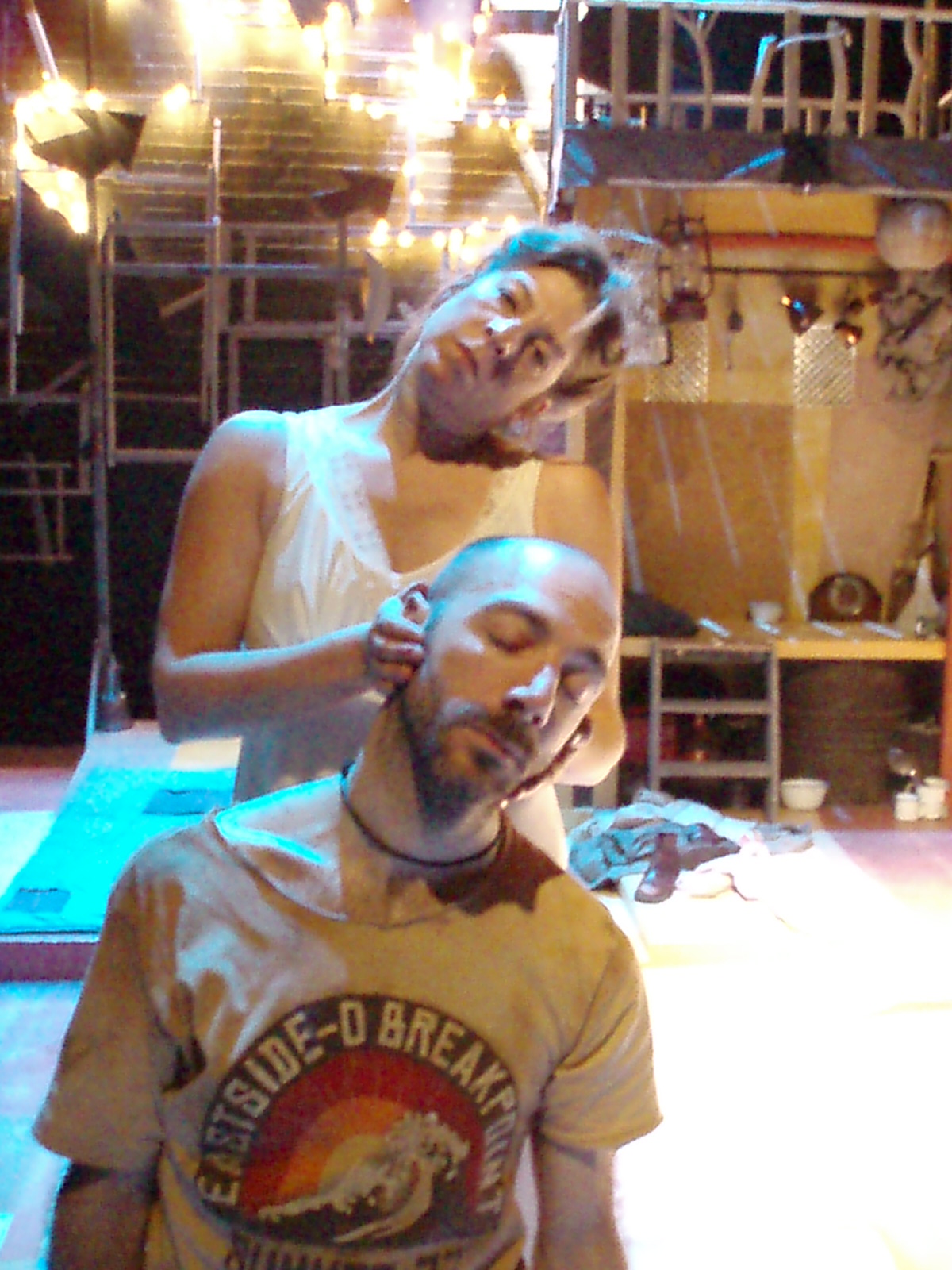 "The play both fascinated and confused our students, which is exactly what we hoped. Coming as they do from a background of story as naturalistic and based on simplistic linear narrative it was really inspiring for them to see something that made them think. Once we had discussed the story (which is always their first port of call as they think that 'getting it' is the be all and end all of theatre!!) we were able to discuss the work of the company and the director and consider how stories can be told through a variety of means. In particular they commented on the use of stillness and silence, and the time it took to develop the premise and characters. Which has now become a major theme in our study of texts, as they battle against the instinct to tell the audience everything in the first five minutes. Some of the students who were sat stage left commented that they were unable to see Jacqueline's early entrances and so thought there were sections with 'nothing going on.' Not a problem elsewhere and something I'm sure you are aware of! On a personal note I thought the piece was engaging and well performed. The style of the piece was clearly 'platform 4' and ideas were developed in an interesting way. In particular the dream sequence with the persistent attempt at waking the dreamer and the use of music to both reflect and move action forward were beautifully done. The set was great and the work between the actors really drew me in to the show and the possible permutations of the story and its location. Your use of the intimate space and the way you play with time and character continue to engage and inspire me."